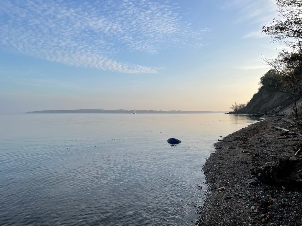 Til min store overraskelse har jeg det helt for mig selv. De eneste andre jeg kan se er en lille flok fosil-jægere på jagt efter hajtænder.