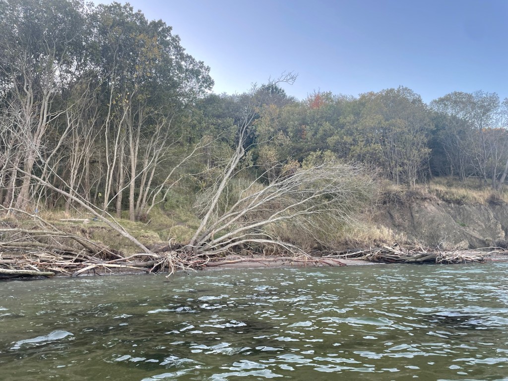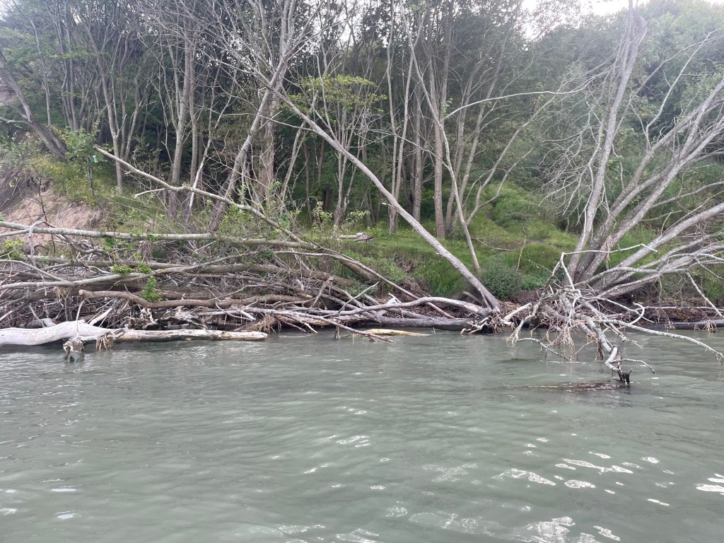 Skredet har betydet at det faktisk er lidt nemmere at fiske pladsen som fluefisker da den gamle “overligger” er væk så man kan kaste ind mellem træerne i bagkastet.