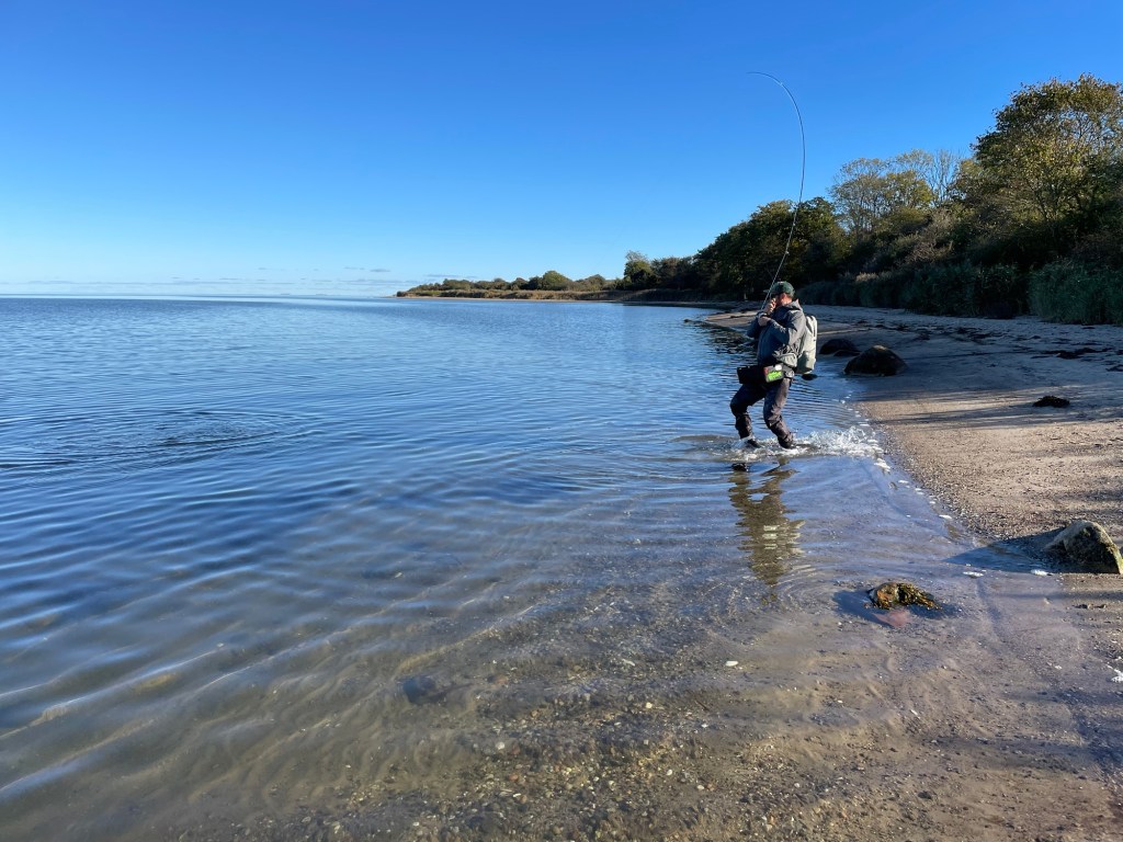 Jeg travede videre derudaf og kunne til sidst skimte en anden lystfisker gå meget længere ude – det måtte enten være Kristian eller Peter. De havde valgt at tage vejen over Palsgård og gå via “Fruens Badehus” (eller hvad den nu hedder). Jeg magtede ikke at gå helt ud til dem og valgte at fiske retur i stedet.