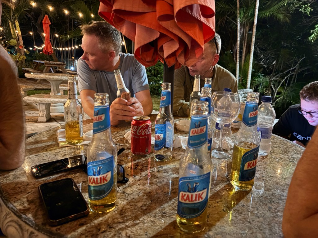 Grundet gruppens helt fantastiske sammenhold og humør så overlever vi de 5 dage. Ja vi får oparbejdet et mindre alkoholsmisbrug, men vi får da også jagtet lidt baracuda, haj og triggerfish.
