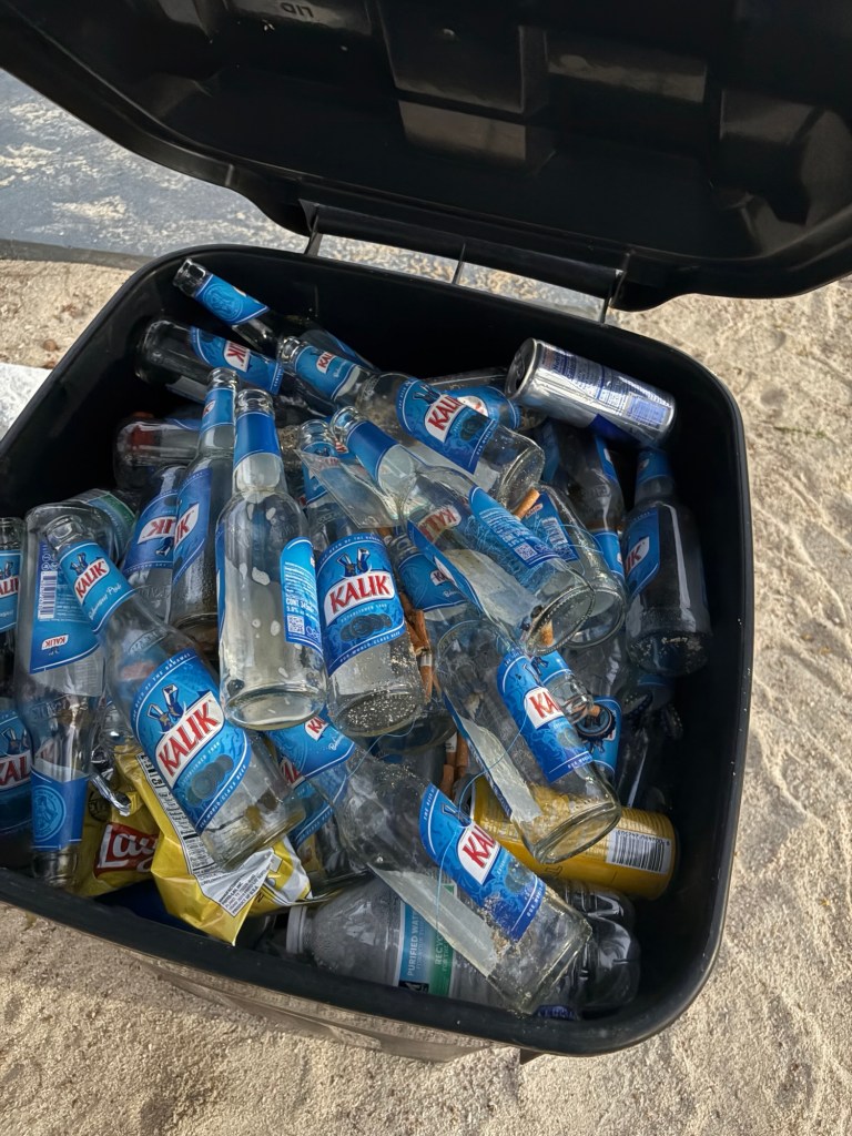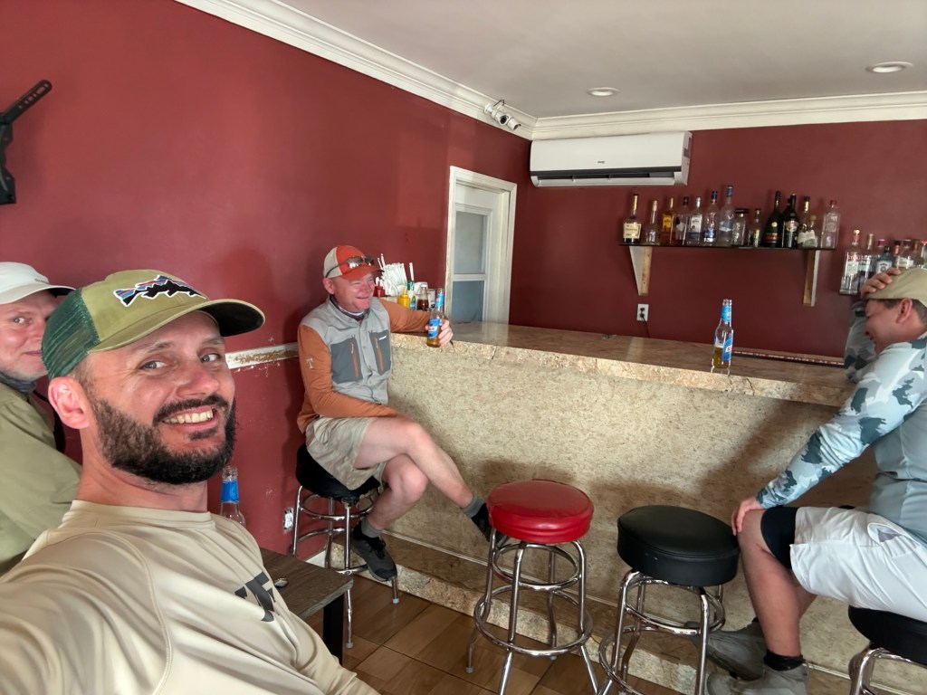 Lørdag lander vi pænt tidligt på øen så det er faktisk en ½ bonus dag. Forbi sprutbutikken på vejen og handle pæne mængder Kalik øl og diverse spiritus. Hurtig udpakning og så ellers en omgang “sådan fanger du bonefish” undervisning på stranden af mr. Acklins himself – Claus Eriksen.